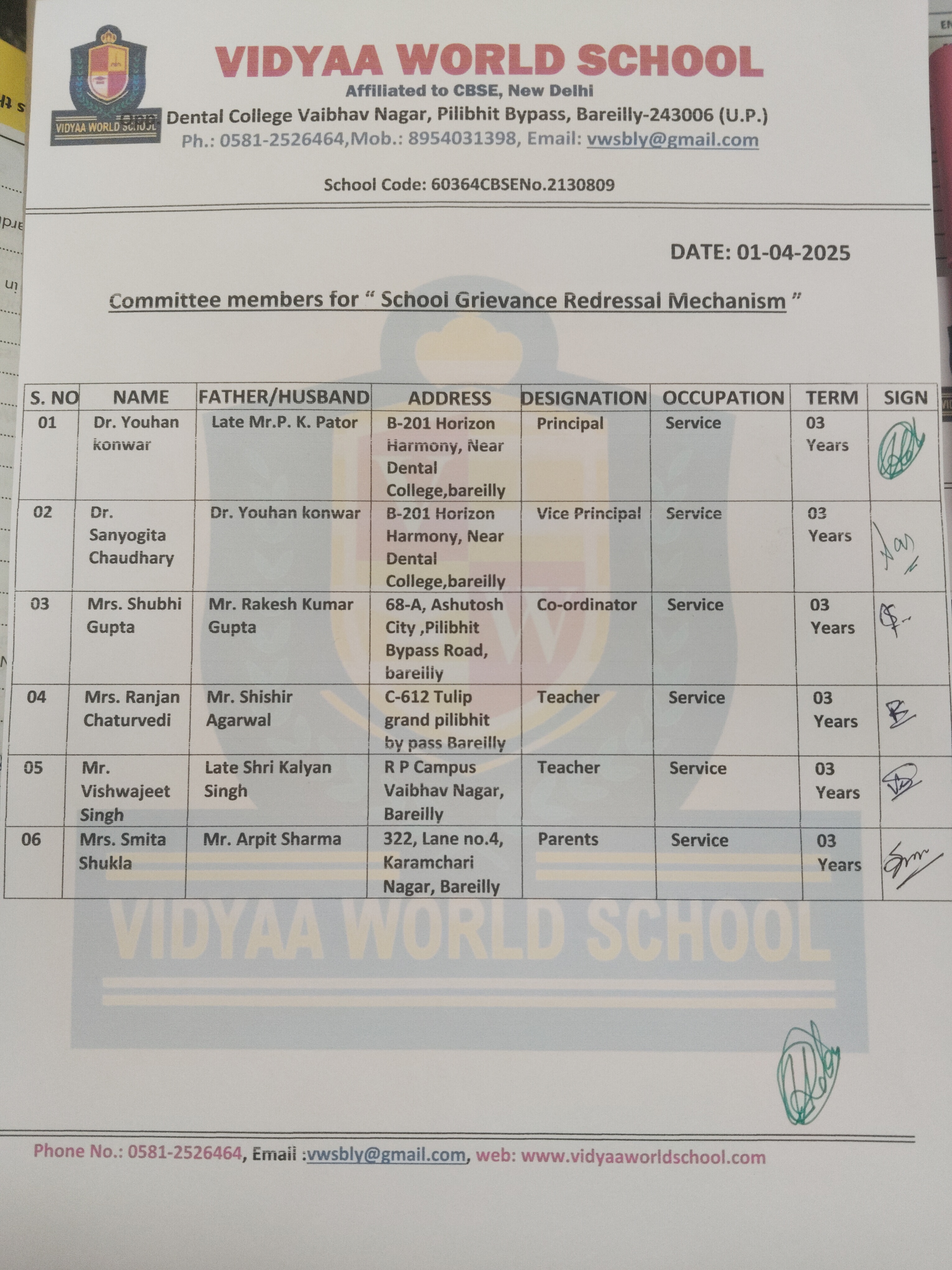 SCHOOL GRIVEANCE REDRESSAL MECHANISM